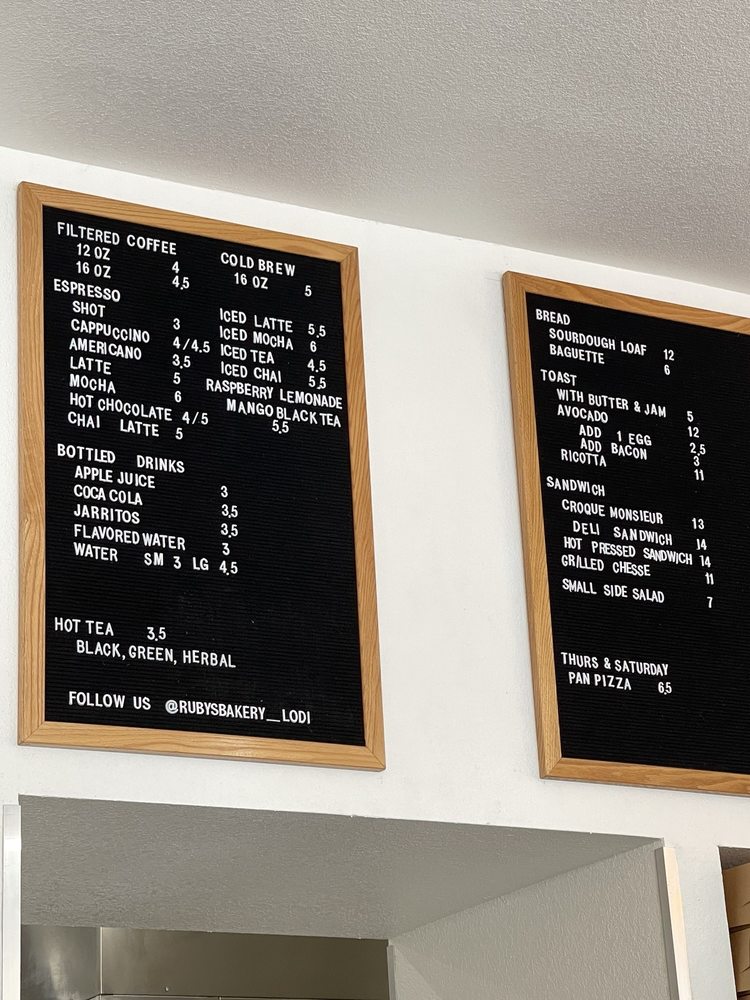 Introducing the menu at Ruby’s Bakery and Café, a popular spot in Lodi, CA where the food and ambiance are top-notch. With a diverse range of options, from delicious pastries to flavorful breakfast and lunch items, this cafe has something for everyone to enjoy. Customers rave about the friendly staff, cute atmosphere, and unique art gallery walls. The avocado toast, coffee cakes, and strawberry eclairs are must-try items that keep patrons coming back for more. The homemade syrups, house-made pastries, and carefully prepared dishes showcase the dedication to quality at Ruby’s. Whether you're looking for a quick pastry and coffee or a leisurely meal with friends, this cafe offers a welcoming space to relax and indulge in delectable treats. Don't miss out on the cheese skirted breakfast sandwich, mocha latte, or pan pizza with heirloom tomatoes for a truly memorable dining experience.